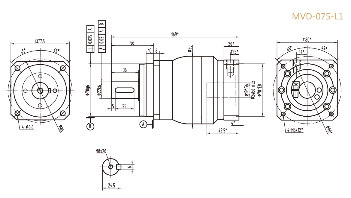 MVD-075-L1系列精密行星減速器型號尺寸與圖紙