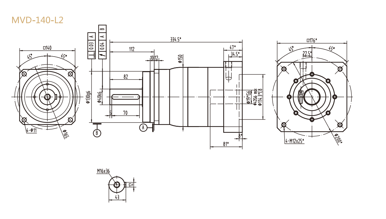MVD-140-L2系列精密行星減速器型號尺寸與圖紙