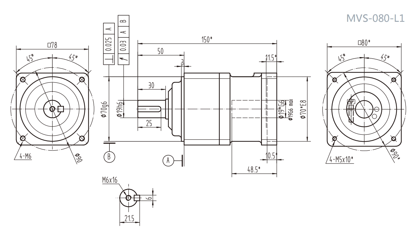 MVS-080-L1系列精密行星減速器型號尺寸與圖紙